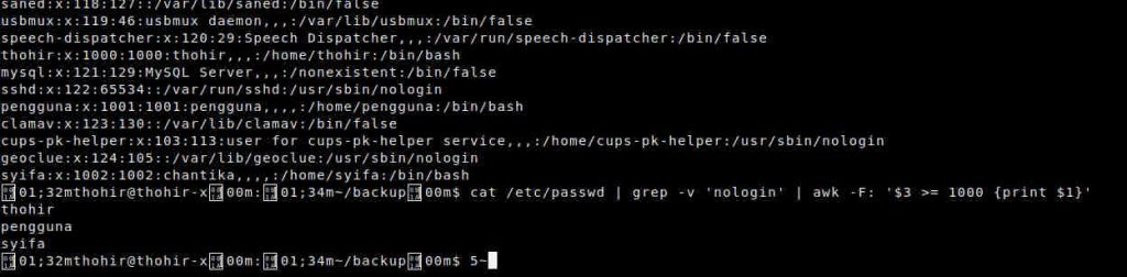 thohir:x:1000:1000:thohir,,,:/home/thohir:/bin/bash