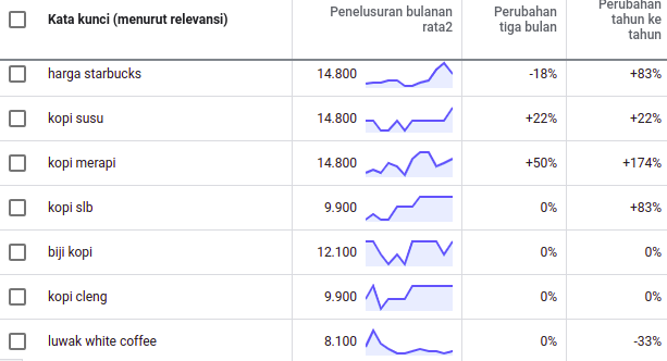Bangun dan planningkan dengan baik bisnis Kopi Anda. Buat Website dengan tools Google Analytics dan Google Search Console. Harganya tidak mahal. Ini investasi untuk yang serius bisnis.