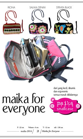 Maika Etnik adalah produsen Tas etnik yang mengusung tema etnik modern dan budaya Indonesia yang di kemas dan dituangkan dalam sebuah produk Tas.